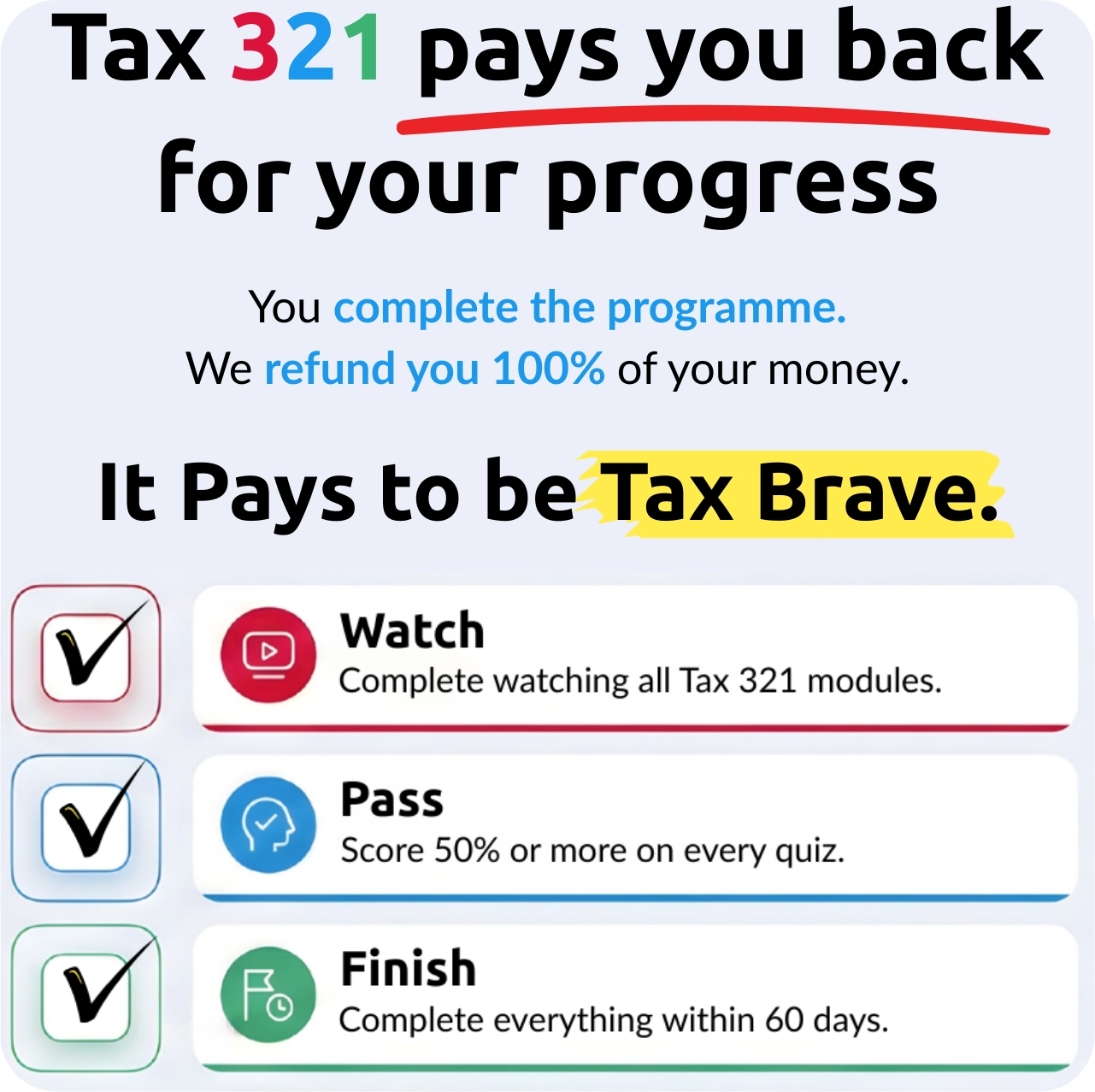 How to Earn a 100% Refund. (Tax 321 pays you back for your progress.)